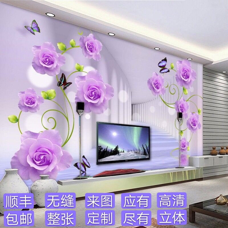 2021电视壁纸3d墙纸墙8d布玫瑰花简约壁画客厅立体影视自粘5d墙。热门设计联盟服务商